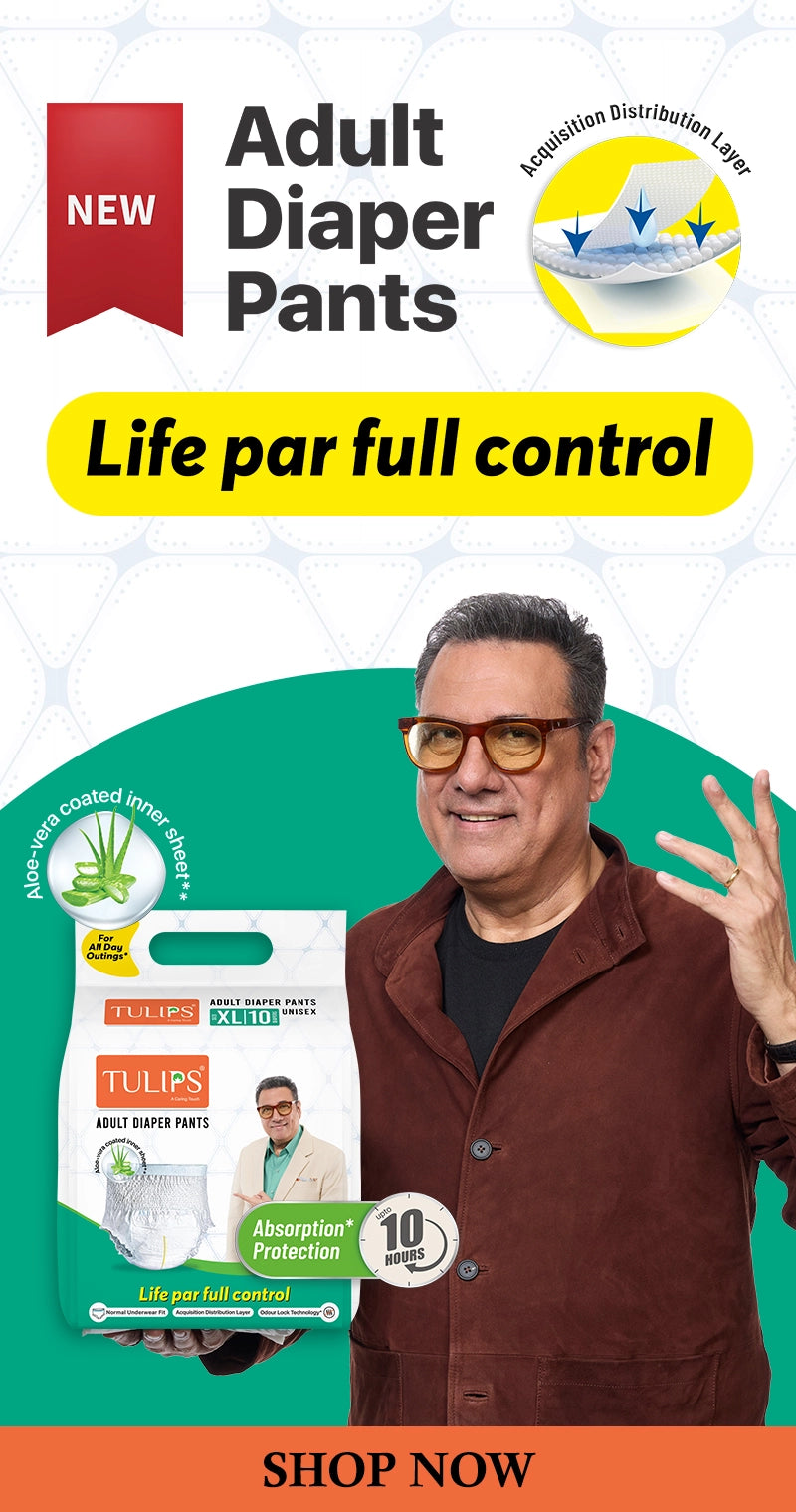 TULIPS Adult Diaper Pants & Tape style are an effective option for both men and women who are experiencing incontinence and bladder issues. Composed of a soft and breathable fabric that features quick absorption, proper distribution of fluid and odour control technology to ensure a comfortable and dry experience throughout the day. Available in Medium, Large & Extra Large (XL) sizes to manage urinary leakage.