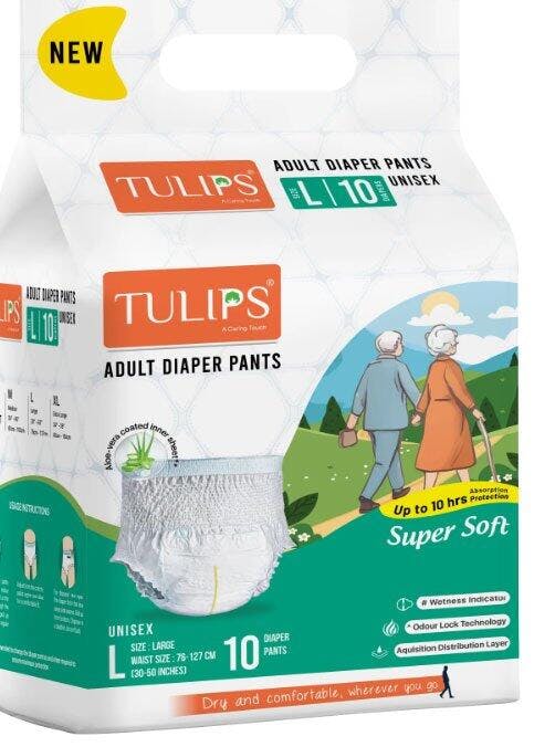Tulips Adult 10 Diaper Pants – Size L | Maximum Comfort & Leak Protection